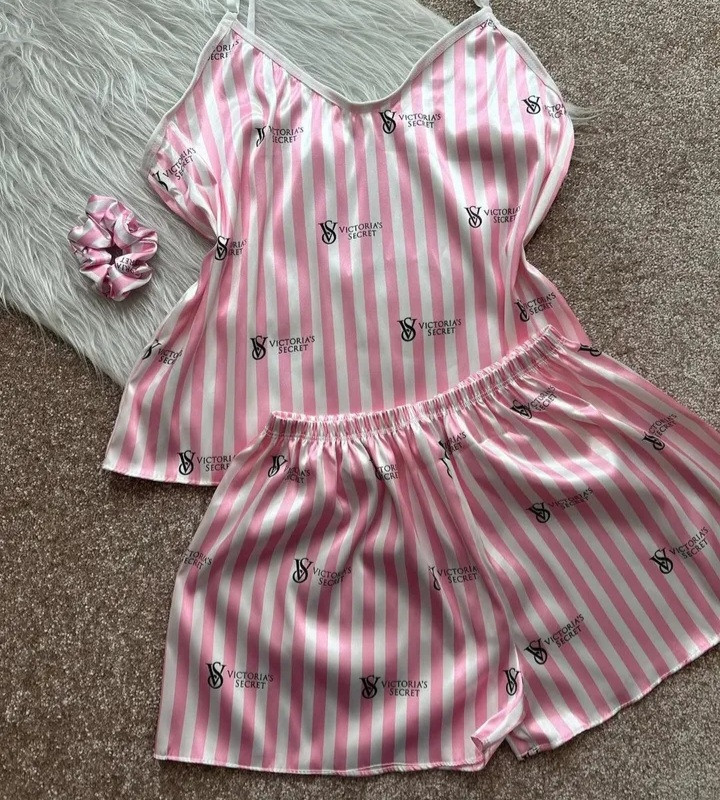 لباس خواب ساتن زنانه طرح راه راه (ویکتوریا سکرت)