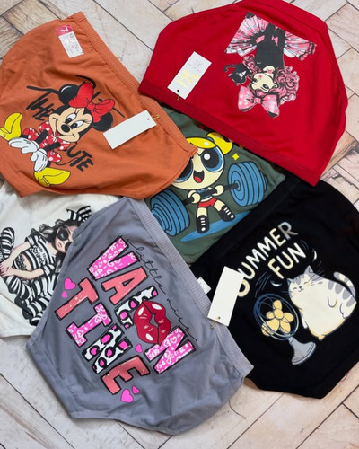 شورت زنانه پنبه سوپر اعلا تمام چاپ برند لعیا بسته ۱۲ عددی